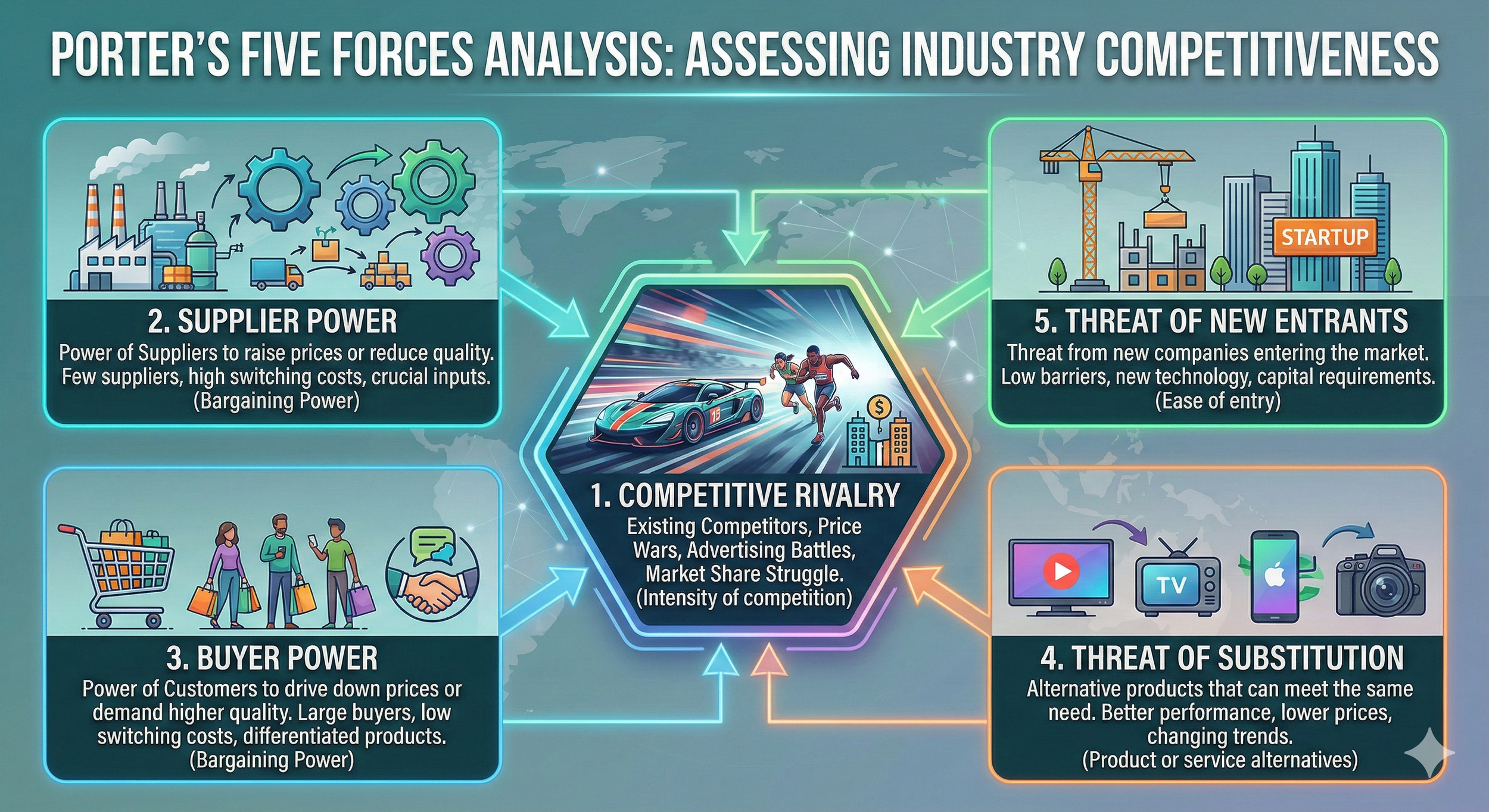 The structure of the consolidated report is as follows. It's written in accordance with the Five Forces Analysis framework.
